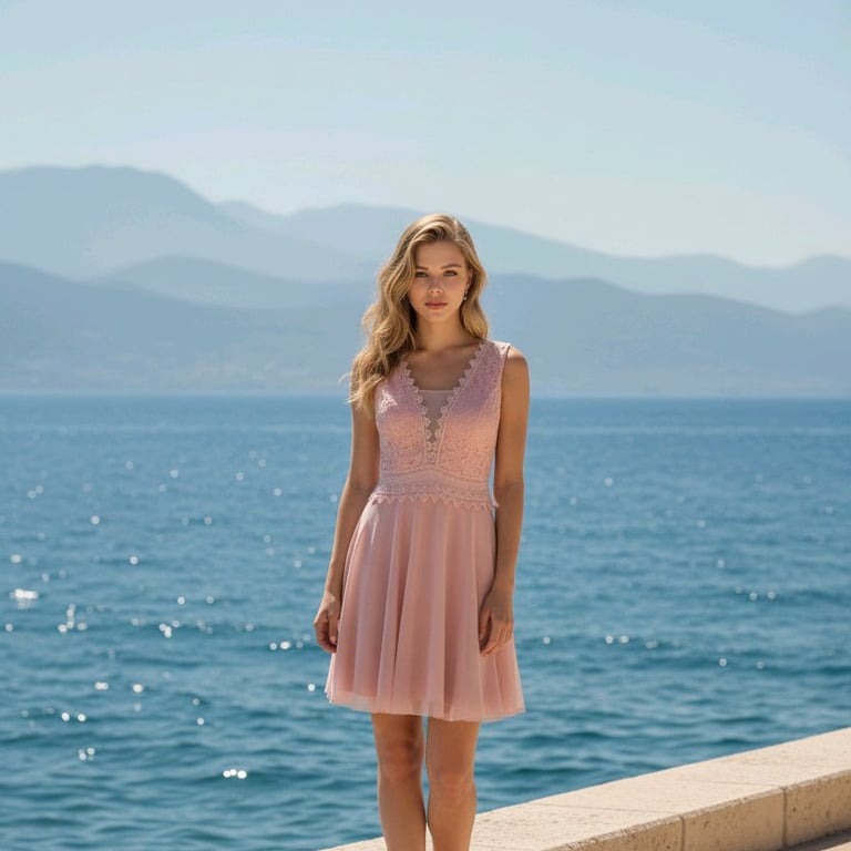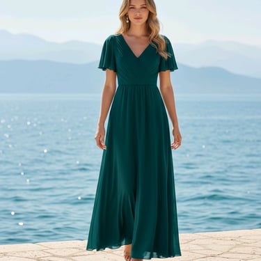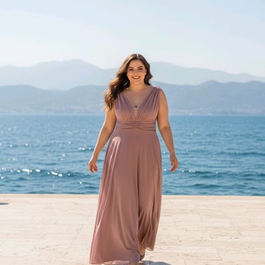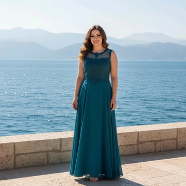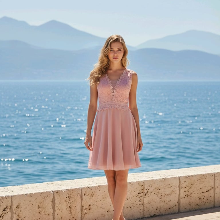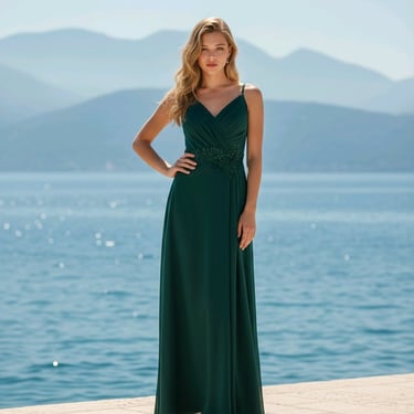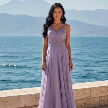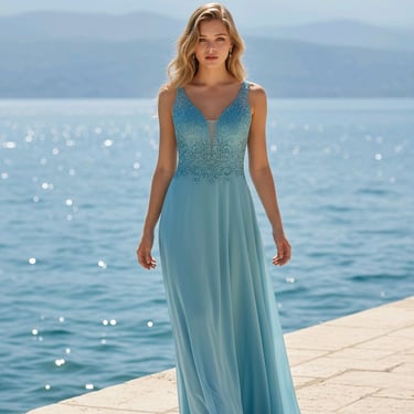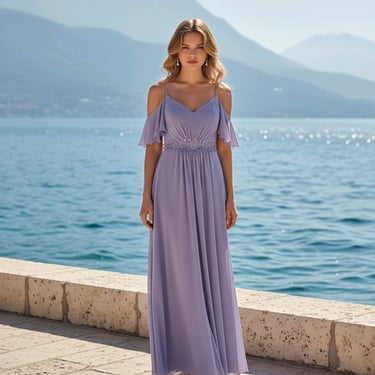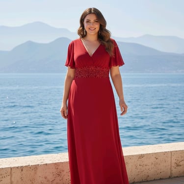 Elle dégage une élégance naturelle, parfaite pour un cocktail, un mariage, un gala léger ou une réception estivale.