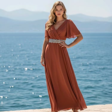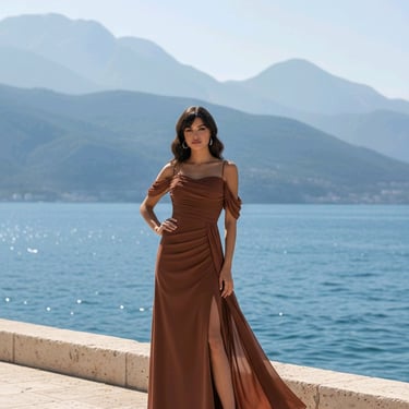 La robe de cocktail longue allonge la silhouette et crée un effet élancé et majestueux.